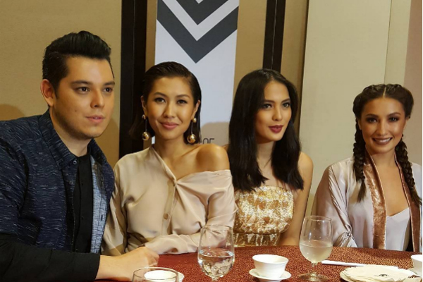 Raymond Gutierrez talks to Liz Uy, Isabelle Daza, and Solenn Heussaff during the media launch of E! Asia’s It Girls on Tue, Oct 18.