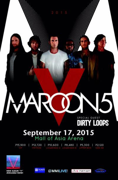 The Manila stop is part of the “Maroon 5 World Tour 2015” in support of their fifth and current album, V. Dirty Loops, who hails from Sweden, will be Maroon 5’s special guest.