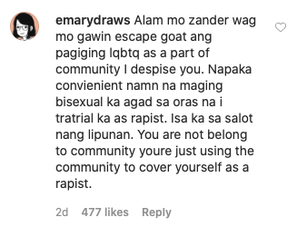 Over at the comments section, someone using the name @emarydraws strongly opposed Ford’s coming out and wrote, “You know [X]ander, don’t use being part of the LGBTQ as a scapegoat, as part of the community, I despise you.”