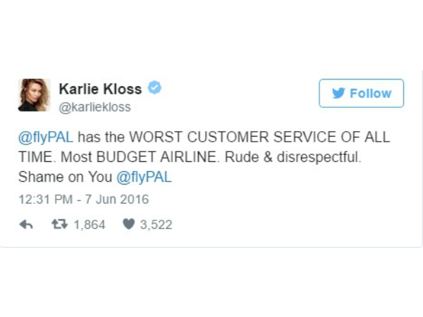 Her tweet: “@flyPAL has the WORST CUSTOMER SERVICE OF ALL TIME. Most BUDGET AIRLINE. Rude & disrespectful. Shame on You @flyPAL.”