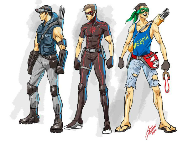 But we like his Fun action/Adventure design the best. No one could say GMA copied Arrow if their superhero was wearing a Jollibee belt bag, right?