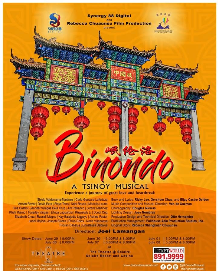Directed by film and television director Joel Lamangan, Binondo: A Tsinoy Musical tells the story of a love triangle between Lily, a Filipino nightclub singer; her childhood friend of Chinese descent, Carlos; and Ah Tiong, a mainland Chinese scholar.