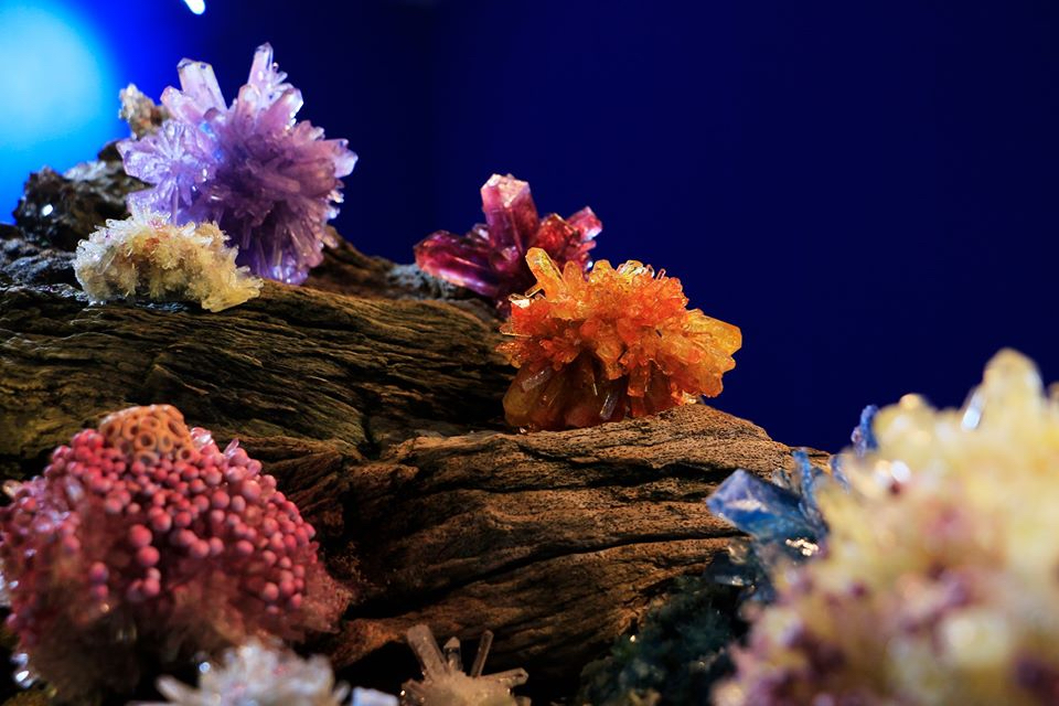 Ogle at crystal sculptures at this Cultural Center exhibit