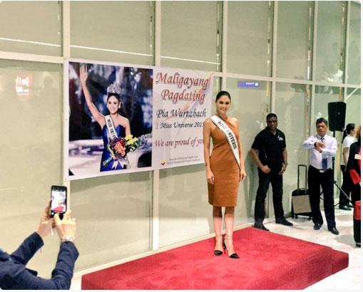 Miss Universe 2015 Pia Wurztabach arrived in the Philippines a little before 6am on Saturday morning, Jan 23 aboard Philippine Airlines flight PR 538 from Indonesia.