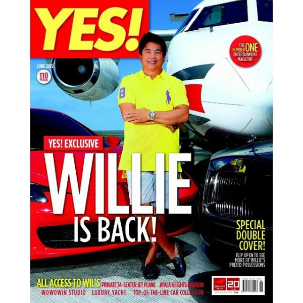 Willie Revillame isn’t like that. Joining him on the cover of the June 2015 issue of Yes! magazine are his prozed possessions, such as two of his top-of-the-line cars, and… his private jetplane!