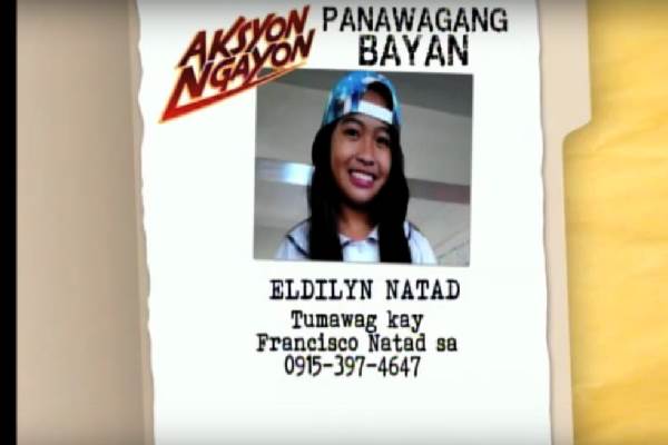 According to Natad, a friend fetched Eldilyn at around 2pm on Aug 8. They said they were going to attend another friend’s birthday party. Later on, Natad learned that his daughter left the party with her boyfriend at around 6pm. Natad identified his daughter’s boyfriend as Roberto Guimaldo, who is believed to be 18 to 19 years old.