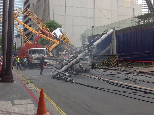 A tower crane that was being used in the construction of a building on Dela Costa Street in Barangay Bel Air, Makati City, collapsed sometime around 8am on Thu, May 26.