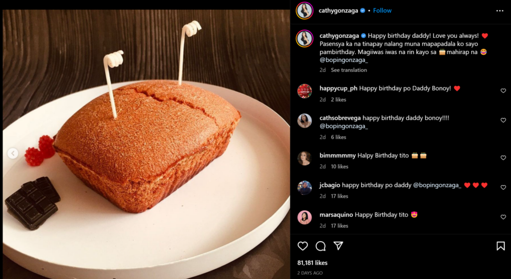 After pissing off netizens for smearing cake frosting on a server’s face during her 35th birthday celebration with friends — and issuing a public apology days after — Alex Gonzaga seems to have made fun of her viral moment online, this time in a birthday post dedicated to her father.