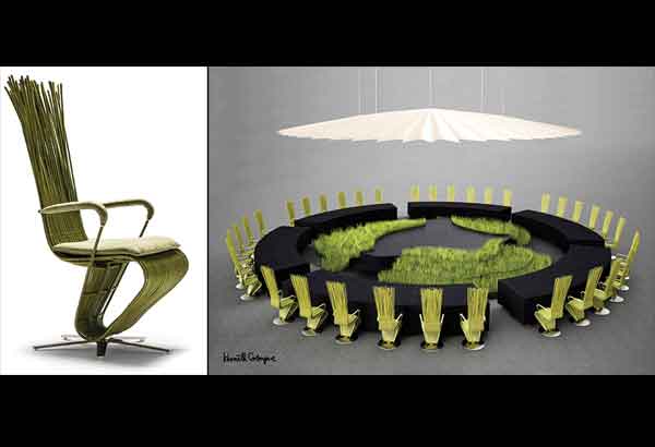 The report noted: “The styling is done by Cebu-based internationally renowned designer Kenneth Cobonpue, whose iconic Yoda chair (see photo), made of rattan strips done in rice green, will be used by the leaders. The chairs can swivel to allow viewing of the performances on raised stages set up around the arena.”