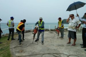 (He claimed he applied [for a permit] to use this, but in the process, they destroyed the natural resources: these woods, the rock formation which is a natural resource here. I told [Crisostomo] that this has to be demolished.)