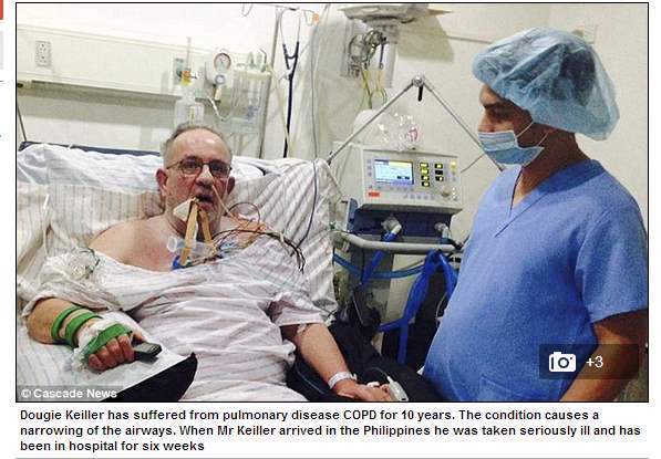 “British national George ‘Dougie’ Keiller, 59, collapsed due to his chronic obstructive pulmonary disease (COPD) on the last leg of his journey to meet his Filipina fiancée Evangeline Go, 54,” reports Emily Kent Smith in the Daily Mail.