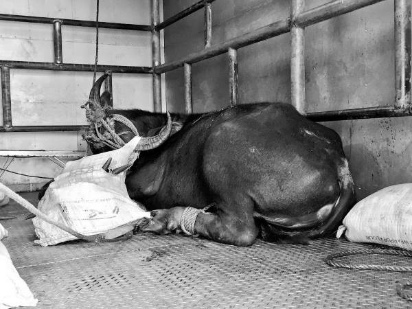 The report noted: “Truck, driven by Domingo Nocedal Jr., 30, was loaded with 30 carabaos and nine cows from Naga City. Nocedal and his helpers — Dante Floresca, 39; Edwin Perez, 31; and Adrian Fresco, 25 — were arrested following the incident.”