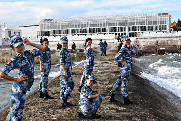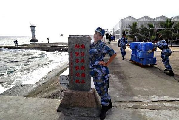 Indeed, these photos from SINA.com show female Chinese sailors happily posing around the island. They are part of a slideshow entitled, “Gratifying results on China’s Yongshu Reef: Building vegetable greenhouses (and) growing fruit trees.”