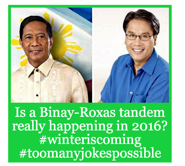 After Binay ever-so-subtly hinted that a “team-up” with Interior Secretary Mar Roxas was possible, we asked our dear Coconauts via our entertaining newsletter (you should all totally sign up. That’s another party) what they thought of that. We obviously made one too many jokes—sorry! it was too hard not to!—but wow, our readers are clearly using their coconut!