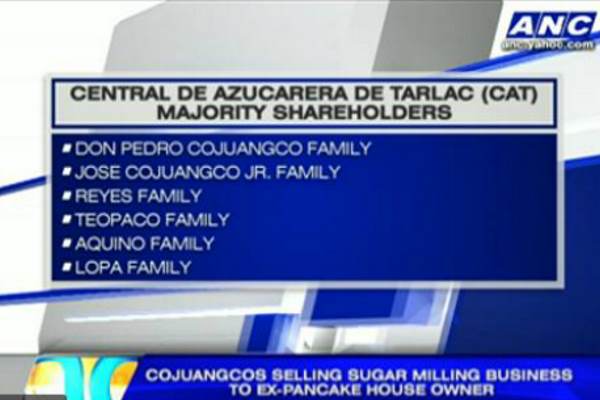 “The Cojuangcos are selling their sugar milling business to one cousin and former Pancake House owner Martin Lorenzo,” reports ABS-CBNnews.com.