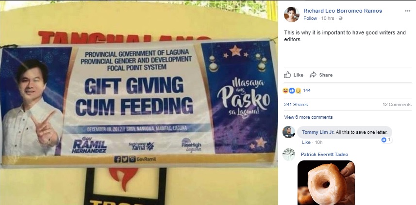 2017 was full of crazy stories but this might be the funniest one. Just last week, a banner of a feeding program in Laguna went viral because of a very unfortunate error.