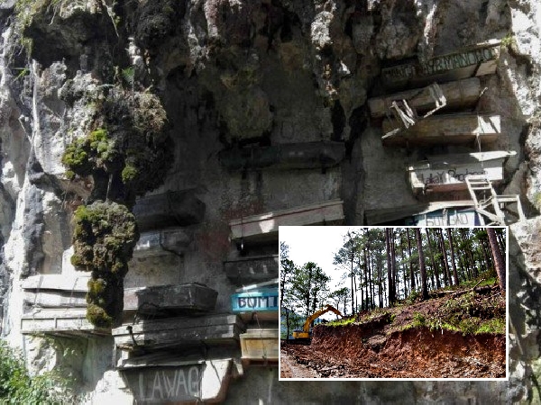 A road-widening projetc of the Department of Public Works (DPWH) and Department of Tourism (DOT) designed to ease traffic to and from Sagada in Mountain Province is threatening the integrity of an ancient mummy burial cave in the area.