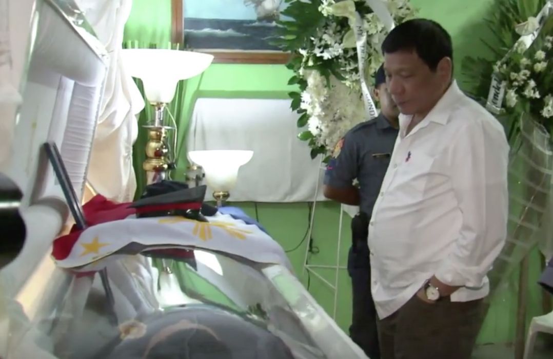 President Rodrigo Duterte on Friday visited the wake of a Pasay City policeman who was killed in a drug operation earlier this week.