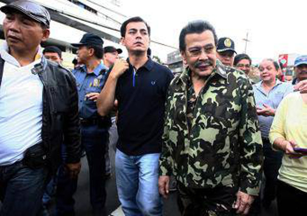 Wearing camouflage reminiscent of his former role as commander in chief, Manila Mayor Joseph Ejercito Estrada himself, along with Vice Mayor Isko Moreno and several traffic enforcers stopped buses at the Mabuhay Rotonda as they tried to enter the city.