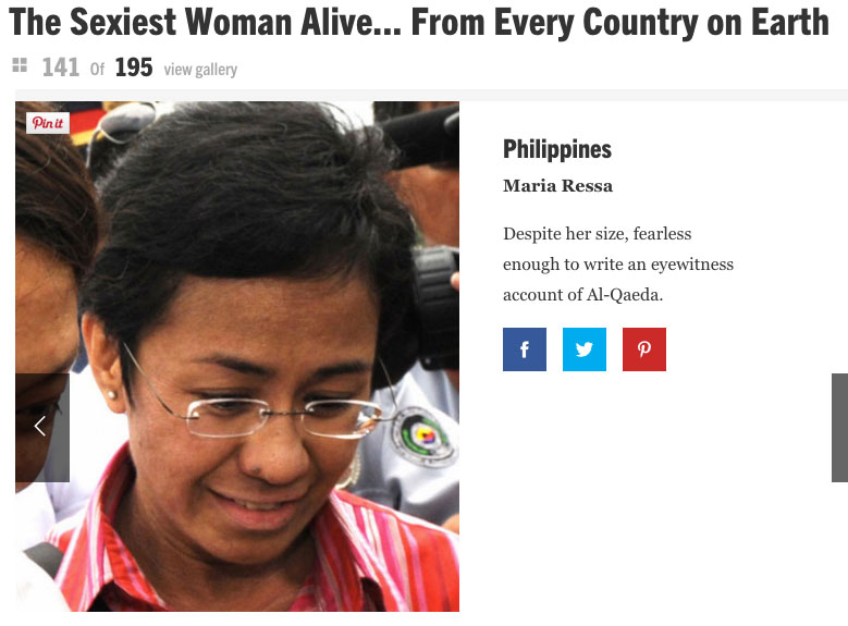 We commend Esquire.com for (1) picking Maria Ressa as the sexiest woman alive from the Philippines and (2) drumming up a kind of list that redefines what sexy is.