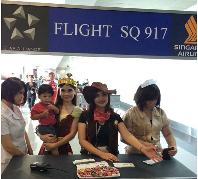 Passengers of Singapore Airlines Flight SQ917 were in for a scary surprise today — the ground crew were getting their Halloween freak on dressed as “princesses, vampires, ghosts and ghouls,” lifestyle editor AA Patawaran posts on Instagram.