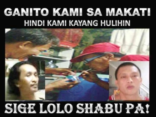 The photo came with the taglines in Filipino, which said, “This is how we are in Makati, we’re untouchables” and “Help yourself to more shabu, grandpa.”