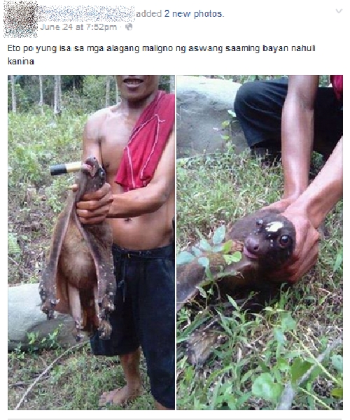 A Facebook user is getting bashed for her post on Fri, Jun 24, where she shared photos of a Philippine flying lemur (kagwang) and claimed that it was an animal raised by the aswang in their town.