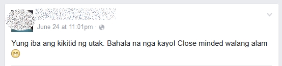 After she got bashed, the Facebook iser stated in a separate post: “Yung iba ang kikitid ng utak. Bahala na nga kayo! Close minded walang alam.”