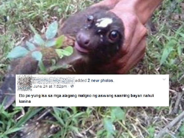 A Facebook user is getting bashed for her post on Fri, Jun 24, where she shared photos of a Philippine flying lemur (kagwang) and claimed that it was an animal raised by the aswang in their town.