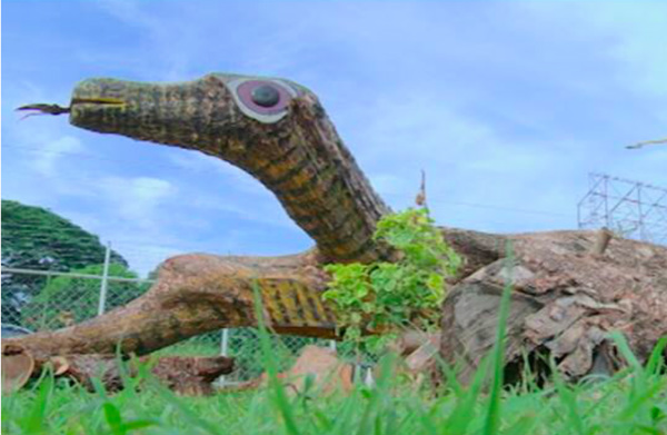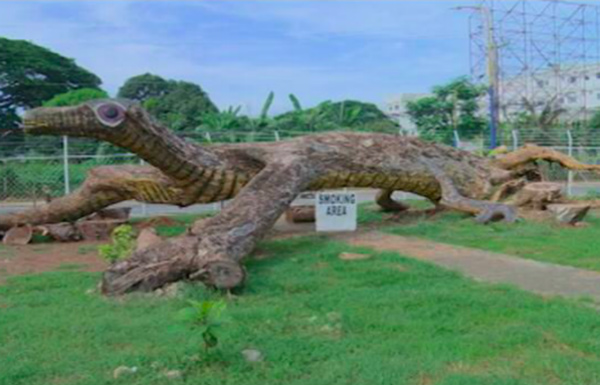 A a giant monitor “lizard” sculpted from a fallen Acacia tree greets tourists arriving at the Puerto Princesa International Airport.