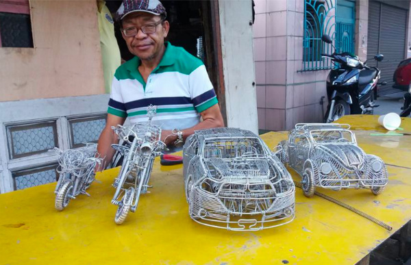 Facebook user Henry Ngan shared photos of Tatay Romanito Carlos, a street vendor in Manila who uses his hands to create intricately wonderful display objects made from wire and metal.