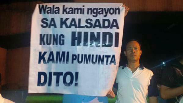 “Wala kami sa kalsada ngayon kung hindi kami pumunta dito,” it reads, referring the more popular “Wala kami sa kalsada ngayon kung hindi pinakikialaman ang iglesia” signage that was all over EDSA last weekend.