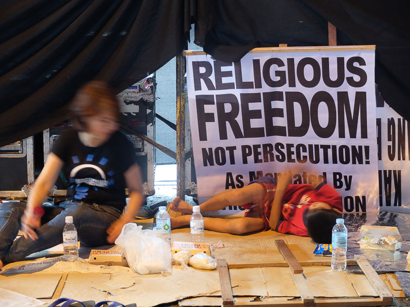 The religious group is planning to stay in the area until Monday morning. The group calls for the separation of church and state with regard to the probe of the Department of Justice on their internal affairs. See photos below.