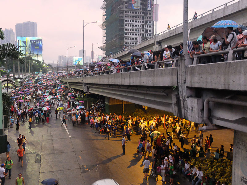 Sunday, day 4 of Iglesia ni Cristo protest rally on EDSA-Shaw, started slow for the religious block. But they’re expecting members from places as far away as Bicol, to arrive in their protest site in Mandaluyong. As of 3pm, PNP estimates the crowd to be at 1,800-strong.