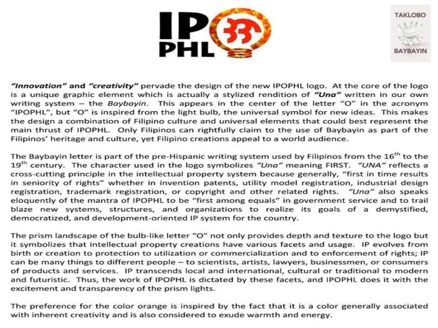 - It must be stressed that IPOPHL has never met nor transacted with any of the officers or members of the Baybayin Group from conceptualization until finalization of the logo.