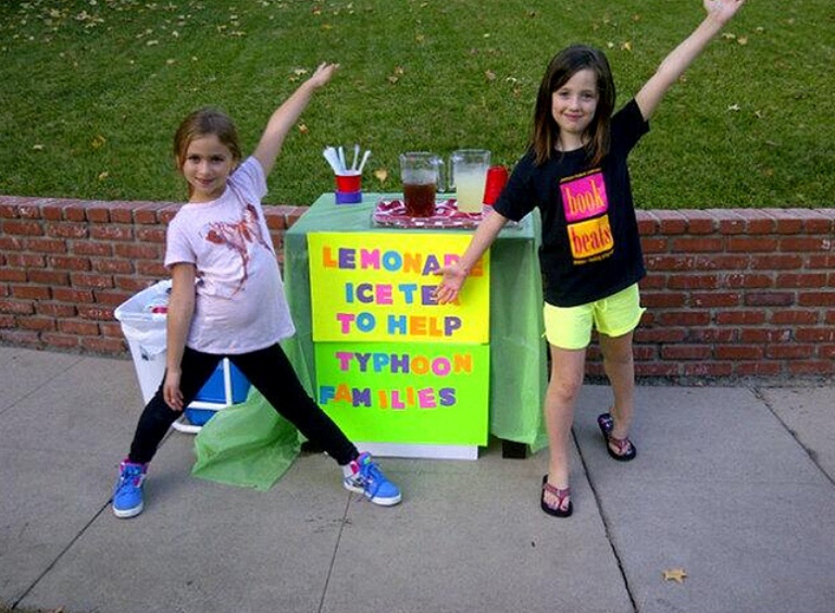 A couple of girls sold lemonade and ice tea “to help typhoon families” and managed to raise $200, which they turned over to UNICEF.
