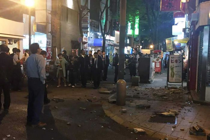 Tens of thousands of people fled their homes after the 6.5-magnitude quake struck the southwestern island of Kyushu on Thursday night, leaving lumps of broken concrete strewn in the streets.