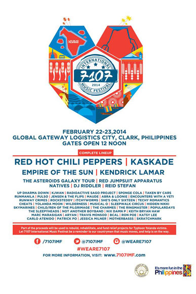 House DJ favorite Kaskade and American hiphop artist Kendrik Lamar will be joining the Red Hot Chili Peppers and Empire of the Sun as headliners of 7107 International Music Festival on Feb 22-23 at Clark, Pampanga.