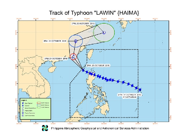 The Philippine Atmospheric, Geophysical, and Astronomical Services Administration (PAGASA) announced that Typhoon Lawin further weakened Thu afternoon, Oct 20, as it moves further away from the Philippines towards the Chinese mainland.