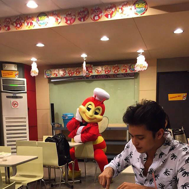 This photo of Jollibee fondly looking at James Reid as the Kapamilya Actor is enjoying a Jollibee meal is going mighty viral. Jollibee is looking on from behind.