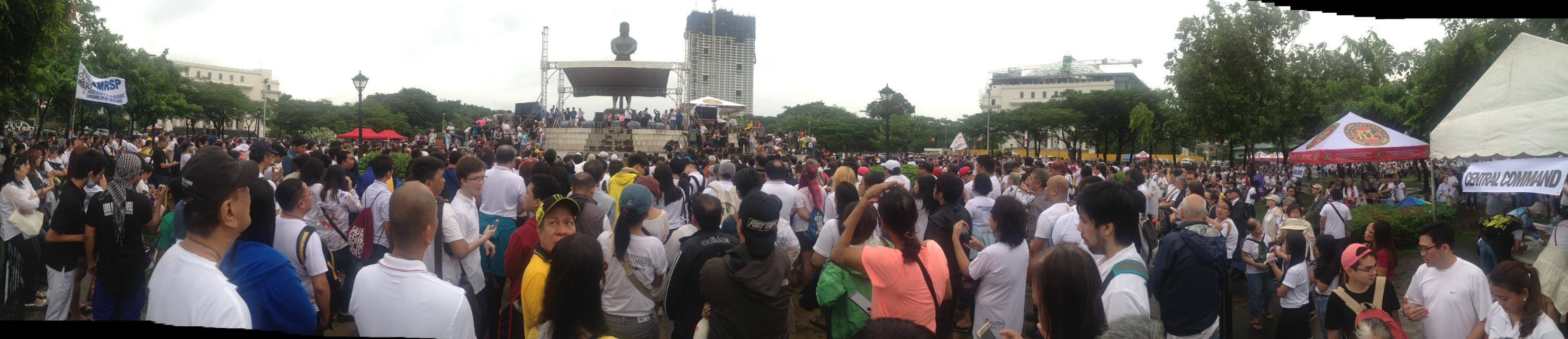 A panoramic shot of the crowd at the Lapu-Lapu Monument, Rizal Park, Manila. PHOTO: Facebook/Kristoffer Pasion