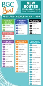 BGC recently announced improved bus routes and schedules that will help lessen passengers’ waiting time. The new routes were developed based on historical data of foot traffic and travel time.
