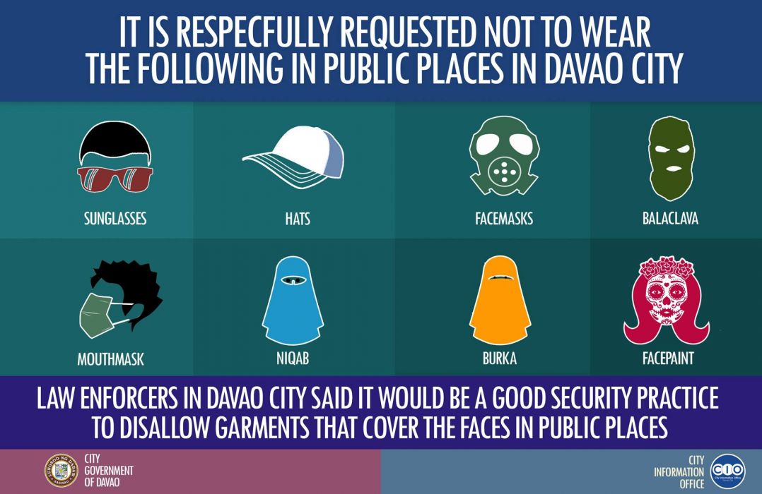 In light of the tragic Davao City bombing which killed at least 14 people, Davao City Mayor Sara Duterte confirmed the local government’s plea for locals and tourists to refrain from covering their faces in public spaces.