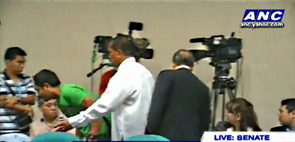 Irked, Santiago addressed the cameraman, saying, “Who are you? Kausapin niyo nga yung taong yun. Huwag kang nagga-ganyan, nagmi-miting kami. Lumabas ka. Now! Will you make him go out and teach him manners and let him come in.”