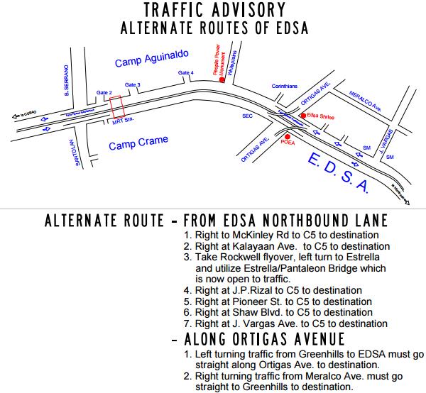 As the local government of Mandaluyong City allowed the Iglesia ni Cristo (INC) to continue its protest at EDSA-Shaw Boulevard until Sunday, Aug 30, the Metropolitan Manila Development Authority (MMDA) has released an advisory on alternate routes.