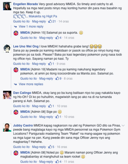 The guys behind the MMDA social media page seems to be hooked on the game as well. They shared tips on where to find several Pokémon.