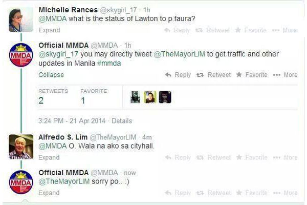 “O. Wala na ako sa City Hall,” was Lim’s good-natured reply to MMDA’s faux pas.
