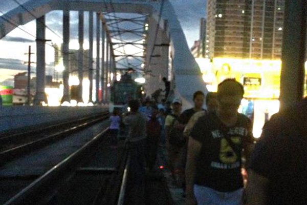 A Metro Rail Transit Line -3 (MRT-3) train stalled anew on Mon night, Jun 15, forcing passengers to disembark and look for other modes of transportation. After the train stalled, the passengers were forced to walk along the Guadalupe Bridge.