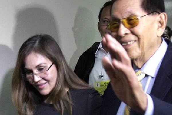 Senate Minority Leader Juan Ponce Enrile showed up at the Senate today, Mon, Aug 24. He was seen walking through the Senate building smiling. His daughter, Katrina Ponce Enrile, was with him.