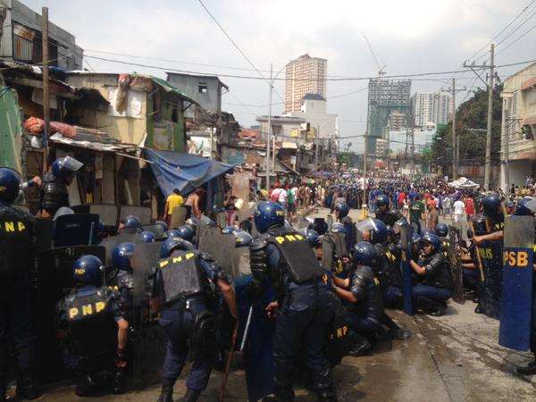 At least 3 people were injured as some of the informal settlers hurled hard objects at members of the demolition team. —report from Dennis Datu, dzMM